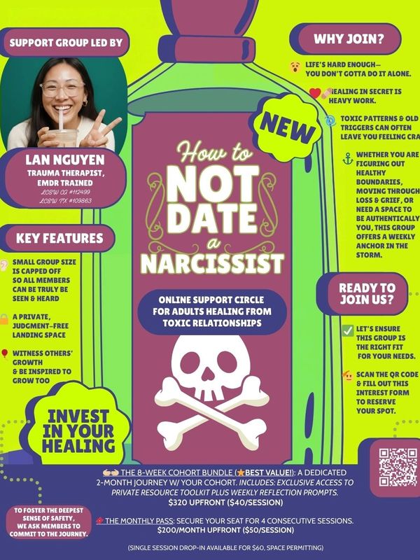 Come apply to this support group led by Lan Nguyen, LCSW, and experience what the buzz is all about. If you miss one Wednesday, you can always catch the following week! This group is set to run well into 2026 🙌🏼